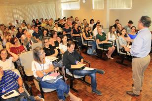 O Conselho Estadual de Educação representado por seu Secretário-Geral, Cleto de Assis, os assessores jurídicos, Vana Nogueira, Marcia Buzatto e André Leon e a Coordenadora da Assessoria Técnica Pedagógica, Larice Klichovski, participou da palestra sobre o Novo En
