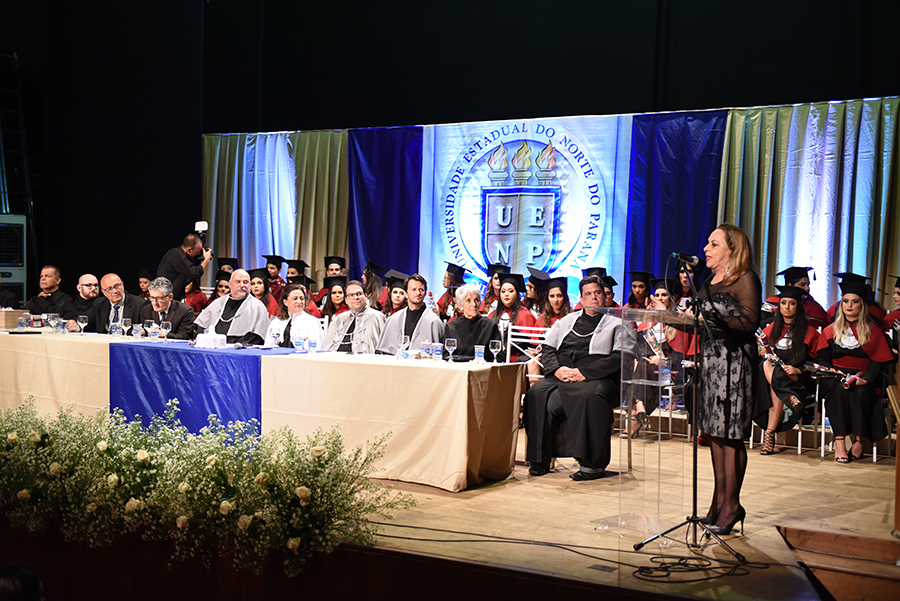 A presidente do Conselho Estadual de Educação do Paraná (CEE/PR), Maria das Graças Figueiredo Saad, participou, no dia 07 de fevereiro de 2020, da cerimônia de colação de grau da primeira turma formada em Odontologia pela Universidade Estadual do Norte do Paraná (UENP).