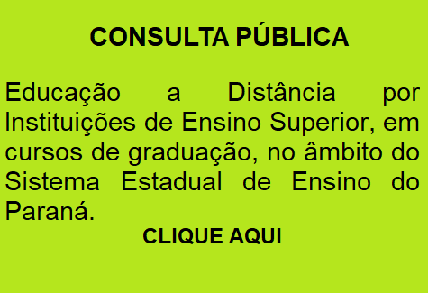 O Conselho Estadual de Educação do Paraná coloca em Consulta Pública a minuta da Deliberação que dispõe sobre a oferta de Educação a Distância por Instituições de Ensino Superior, em cursos de graduação, no âmbito do Sistema Estadual de Ensino do Paraná.