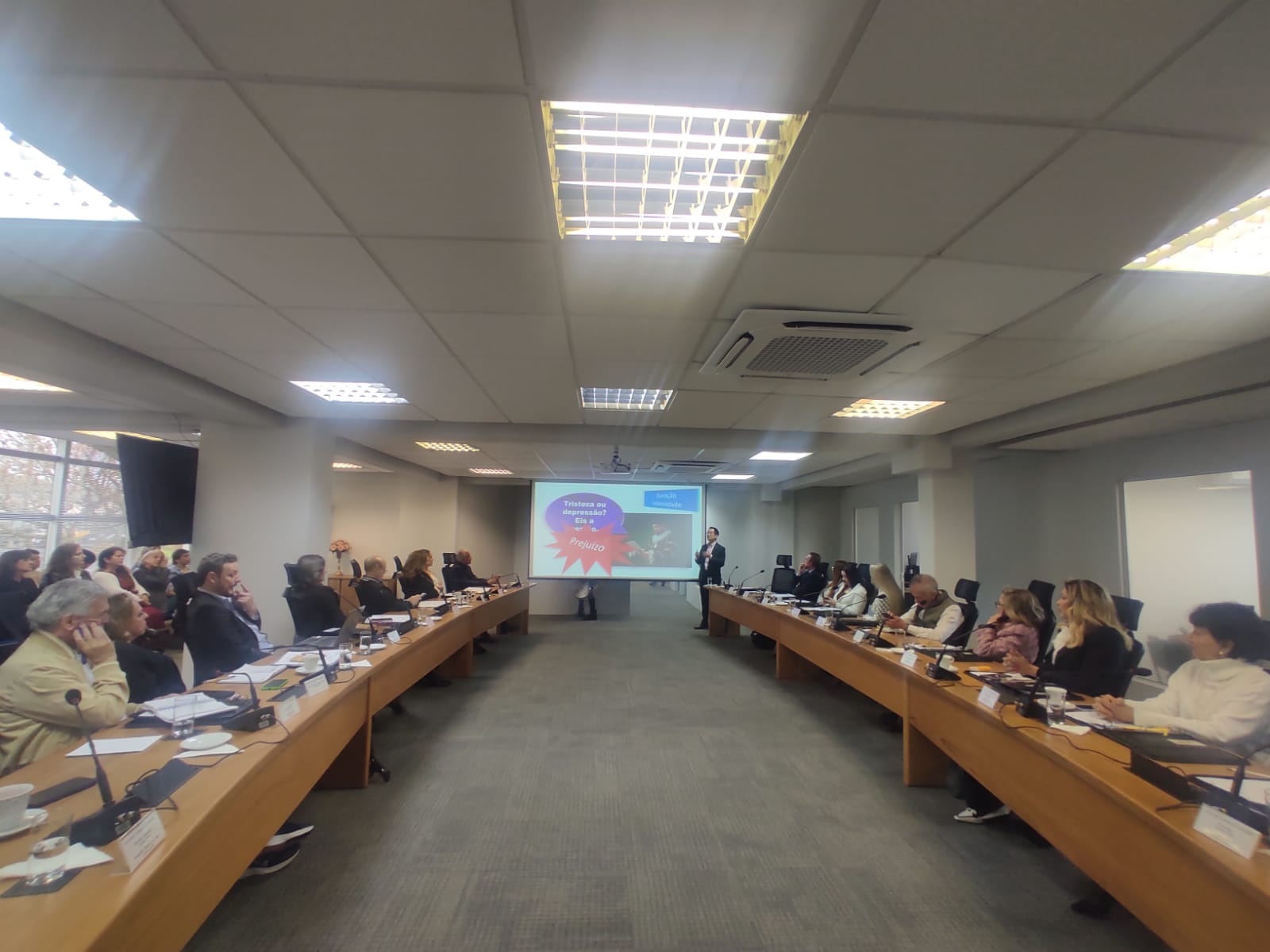 O psiquiatra Dr. Glauber Higa Kaio esteve presente no Conselho Estadual de Educação do Paraná, durante a 8.ª Reunião Ordinária do Conselho Pleno, para dialogar com o Colegiado e servidores sobre transtornos de humor.